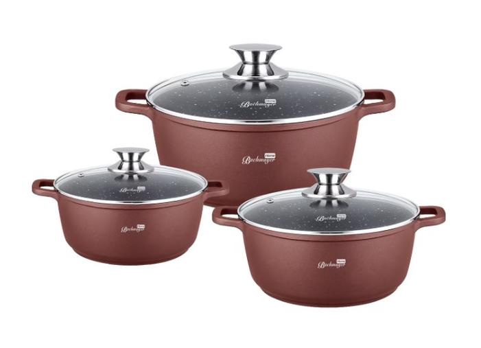 Bachmayer 3 részes márvány bevonatú lábas készlet piros BM-7301