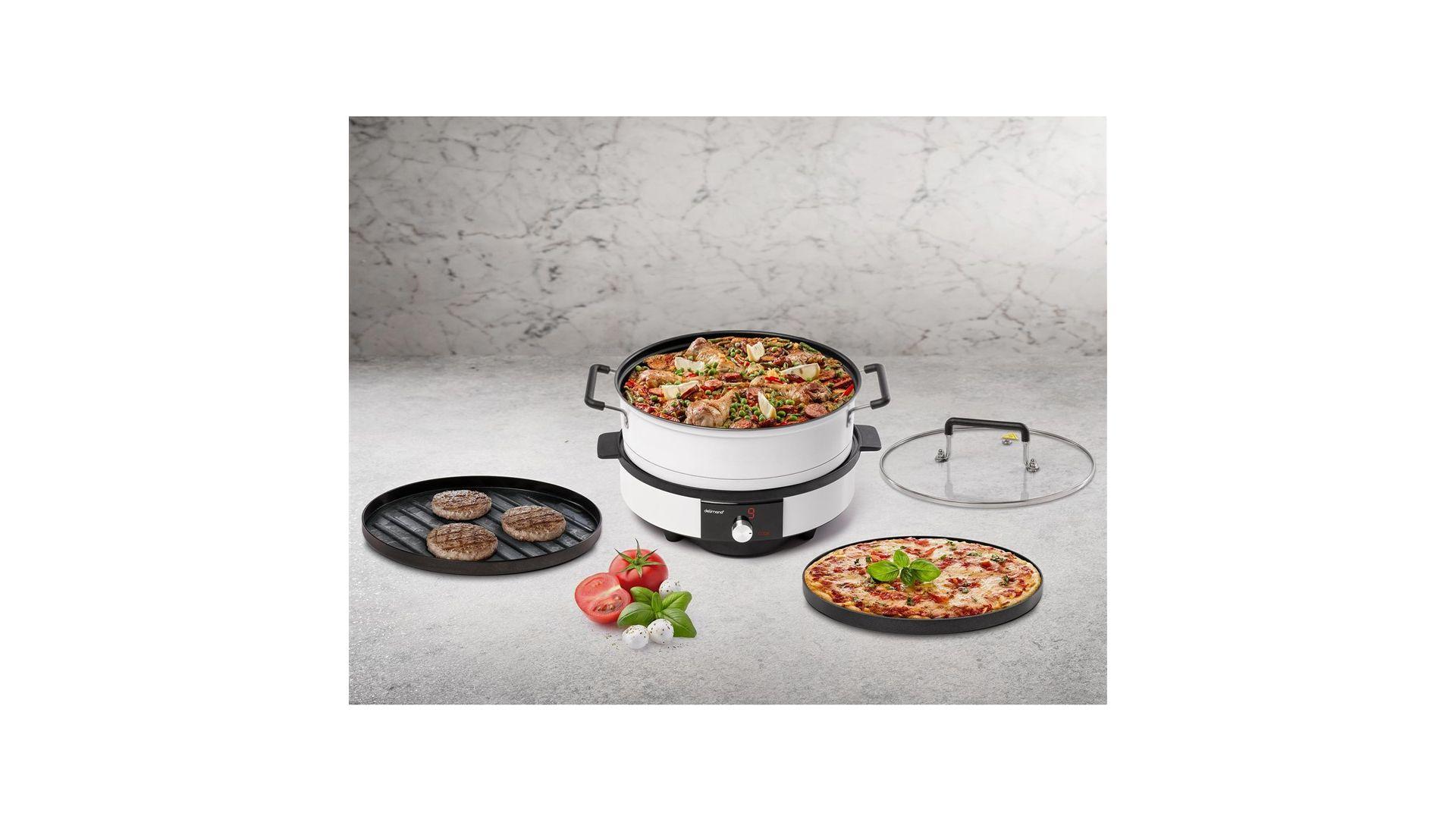 Delimano Elektromos sütő-főző edény, 2000 W, 4 liter, 4 az 1-ben, 12 fokozat, 40-300 ͦC sütési hőmérséklet
