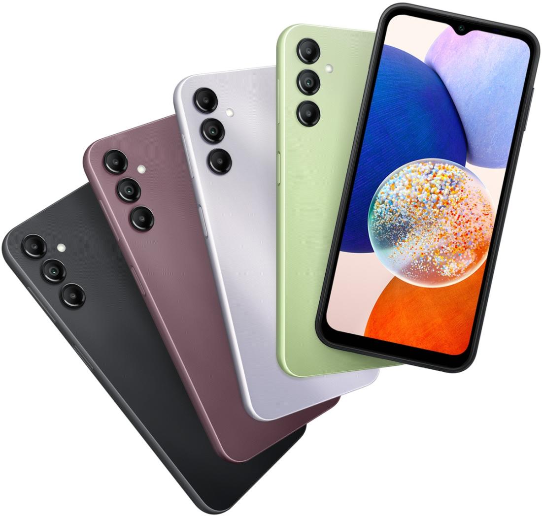 A stílusos, minimalista dizájn az élénk színekkel találkozik a Galaxy A14 5G-ben.