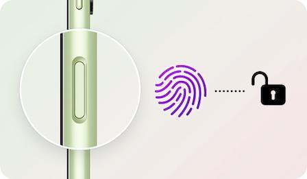 A biztonságod érdekében az oldalsó ujjlenyomat-olvasó védi a készüléked, ami csak a te ujjlenyomatoddal használható.
