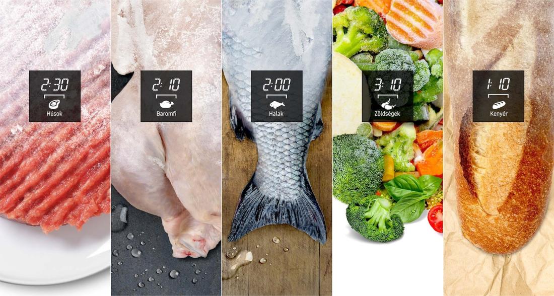 A Quick Defrost funkcióval gyorsan és egyenletesen olvaszthatod ki az ételeket. Mivel az automatikus kiolvasztási algoritmus 5 ételfajta szerint számolja ki a megfelelő kiolvasztási időt, jóval kevesebb időt igényel a hozzávalók előkészítése.