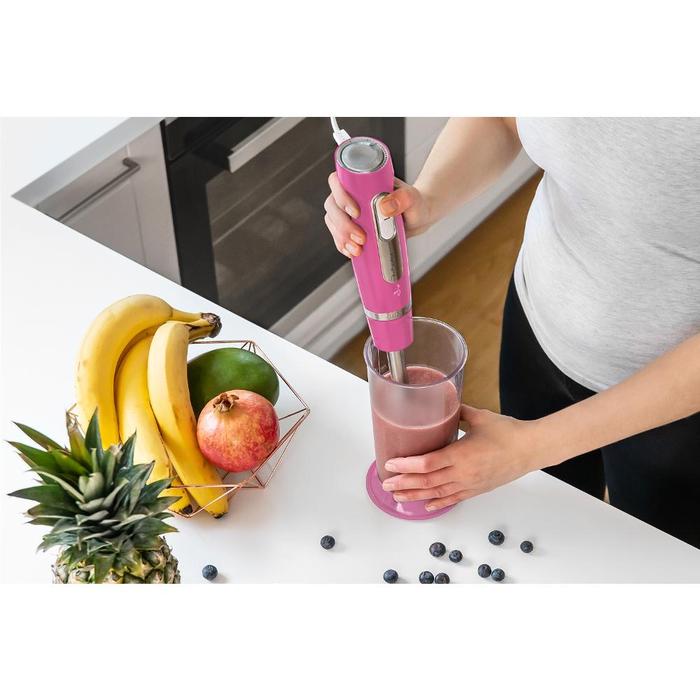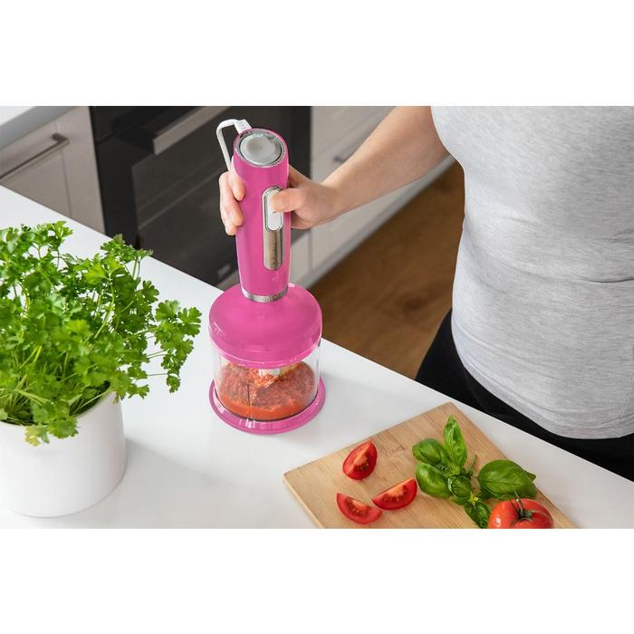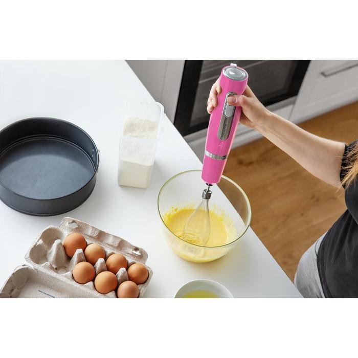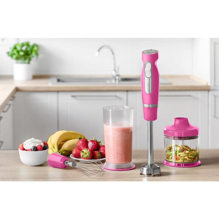Csomag tartalma | 700 ml-es mixelő edény fedéllel • 500 ml-es aprító edény, rozsdamentes késsel és fedéllel • Rozsdamentes habverő • Rozsdamentes rúdmixer |