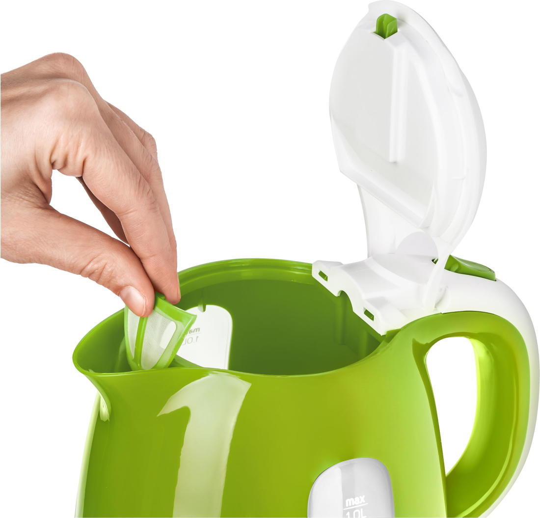 A klasszikus Sencor SWK 1011GR elektromos vízforralóval időt és energiát takaríthat meg. A vízforraló 1100 W teljesítményének köszönhetően gyorsan forralja fel a vizet. Az 1 literes kapacitása révén ideális választás 1-2 személyes háztartásokba, valamint a beépített szűrő könnyen és egyszerűen eltávolítható, tisztítható. A vízforraló két oldalán vízjeles mérték segíti a felhasználót.